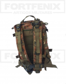Mochila fabricada em RipStop Cedro, conta com sistema MOLLE, para acoplagem de módulos, 5 compartimentos, alças acolchoadas e removíveis, correias de compressão e cintos de fixação.