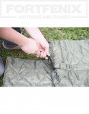 Confeccionado em poliéster revestido com manta. Abertura e fechamento com zíper e reforço com velcro. Acompanha porta saco de dormir.